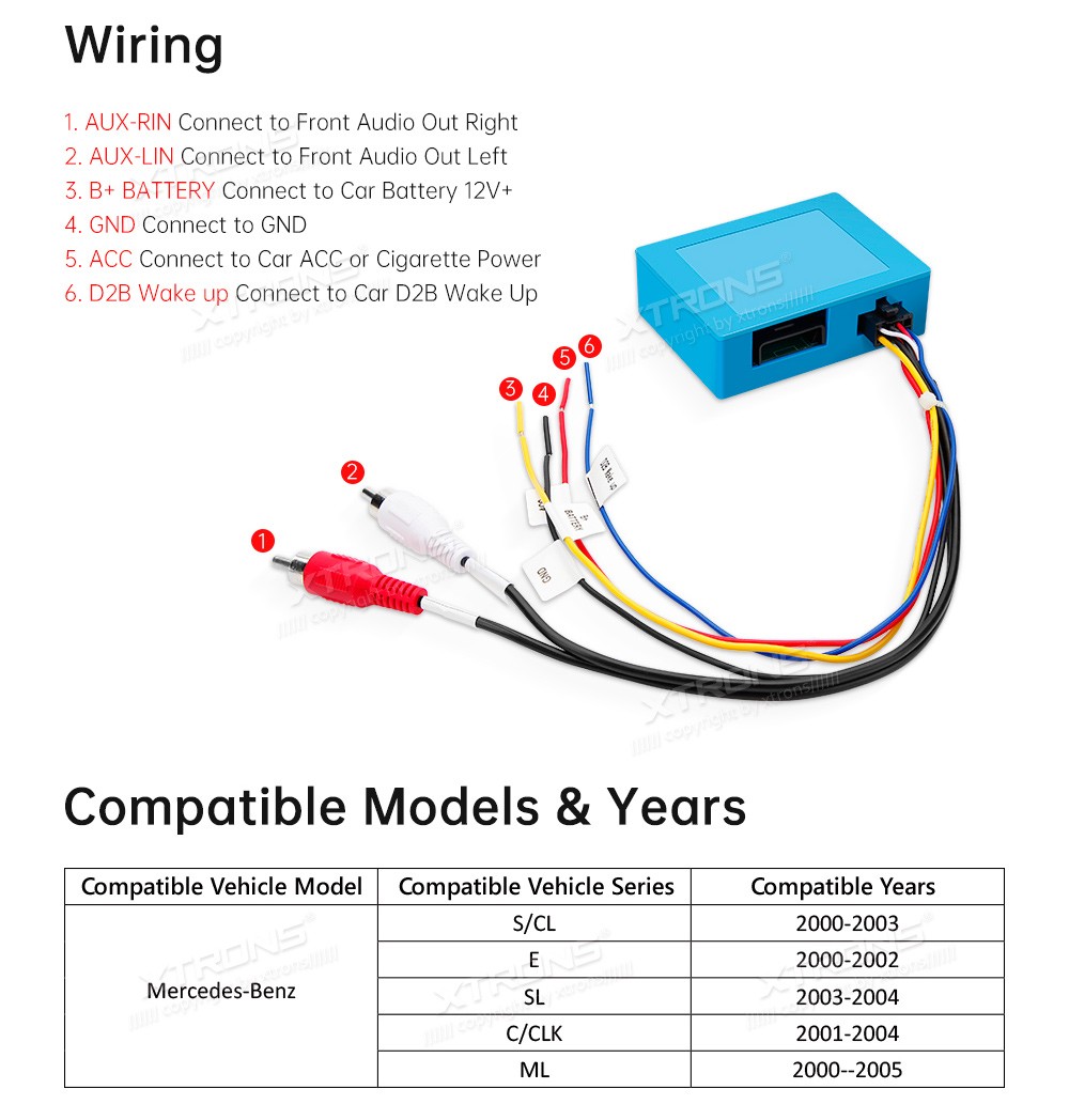 XTRONS FOBB06 Fiiberoptiline adapterOptical Fiber Decoder Box For Mercedes-Benz S/SL/C/CL/CLK/E/ML Series Only D2B Optical Bus System*This is a plug-and-play adapter required in vehicles which have an original D2B Optical Bus System (COMAND 2.0 & COMAND 2.5 Systems), it provides high-quality aud ...