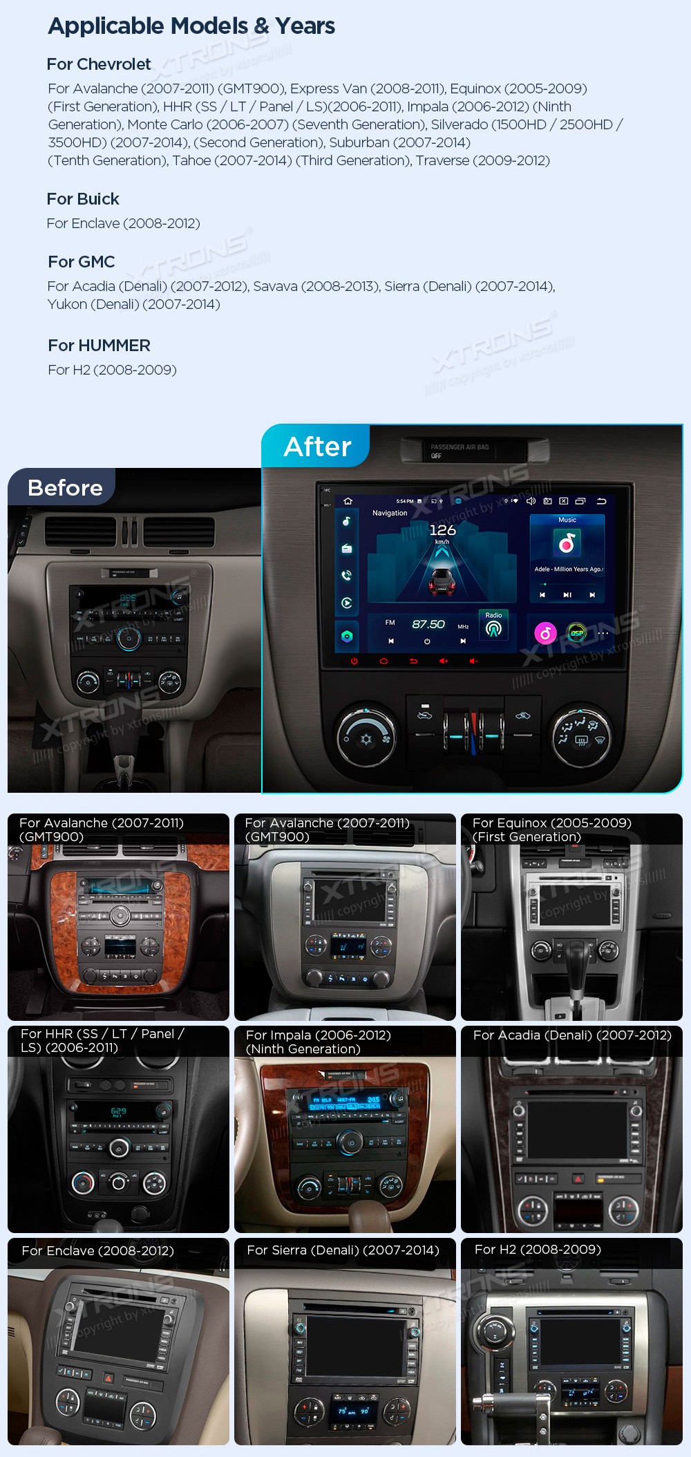 XTRONS IX82JCCL 8.0" Chevrolet, Buick, GMC, HUMMER Multimeedia Android 12.0 Octa CoreCHEVROLETAvalanche (2007-2011) (GMT900), Express Van (2008-2011), Equinox (2005-2009) (First Generation), HHR (SS / LT / Panel / LS) (2006-2011), Impala (2006-2012) (Ninth Generation), Monte Carlo (2006-2007) ...