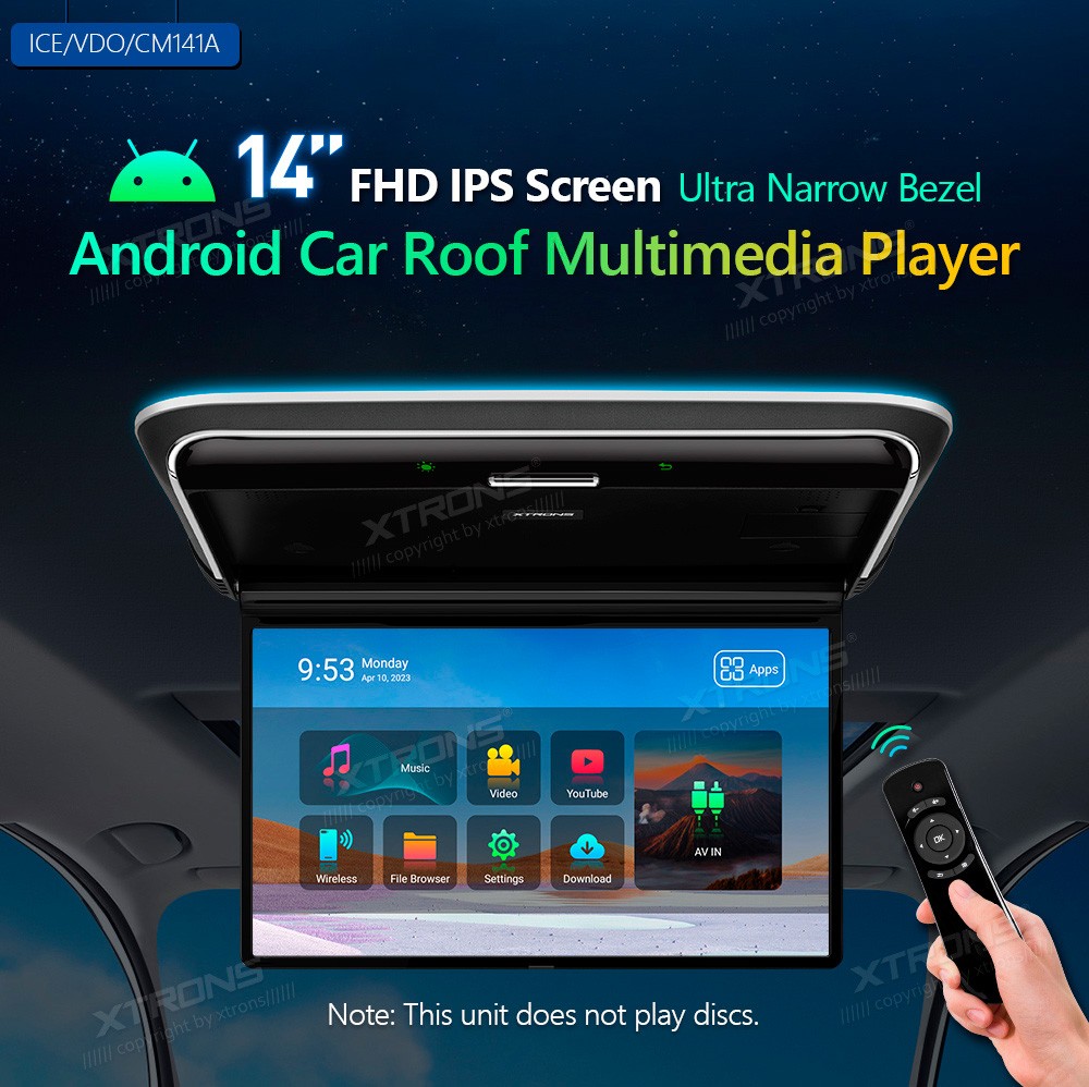 XTRONS CM141A 14.0" Laemonitor Android 11.0 WIFI HDMIEkraan 14.0" HD ( 1920*1080px ), 16:9 / 4:3, IPSToetatud signaalid: PAL/NTSC/AUTOTarkvara: Android 11.0Protsessor Quad-CoreMuutmälu 1GB, 16GB sisemäluWIFI (2.4GHz ja 5.0GHz) & 4G (4G jaoks vajalik XTRONS 4GDONG001)Bluetooth 5.0 (Tänu siss ...