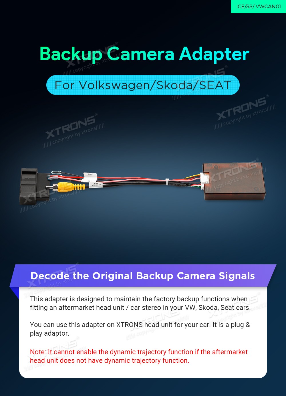 XTRONS VWCAN01 originaal tagurduskaamera adapter Volkswagen, Skoda, SEAT ...