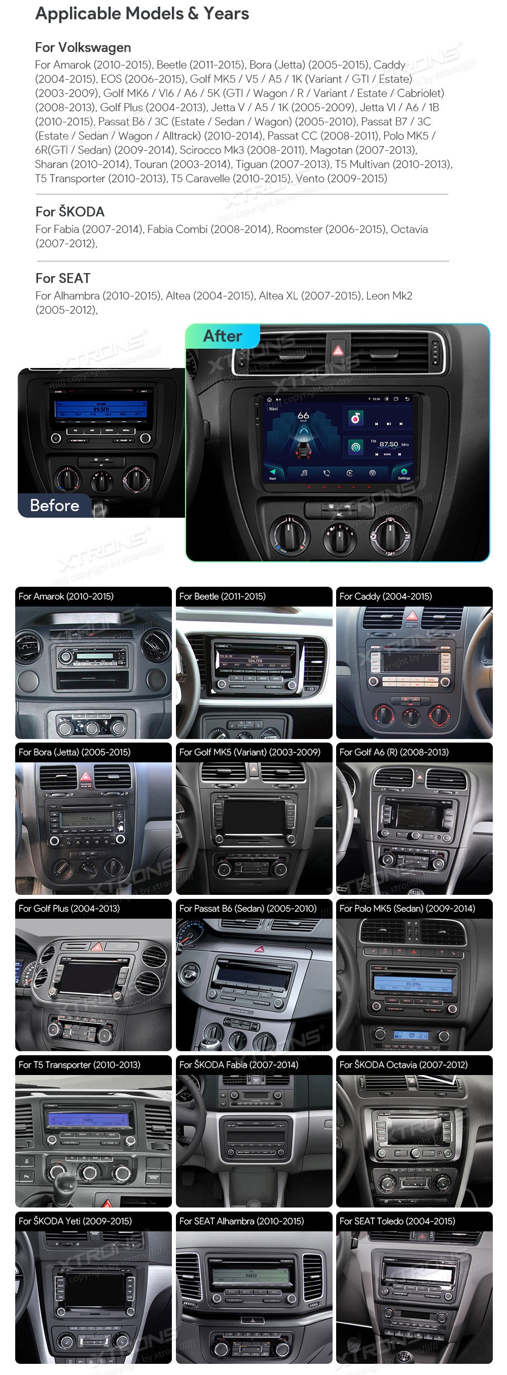 XTRONS IA92MTVLS 9.0" VW, Skoda, Seat Multimeedia Android 12.0 Octa-CoreVolkswagenAmarok (2010-2015), Beetle (2011-2015), Bora (Jetta)(2005-2015), Caddy (2004-2015), EOS (2006-2015), Golf MK5/V5/A5/1K(Variant/GTI/Estate)(2003-2009), Golf MK6/VI6/A6/5K(GTI/Wagon/R/Variant/Estate/Cabriolet)(2008 ...