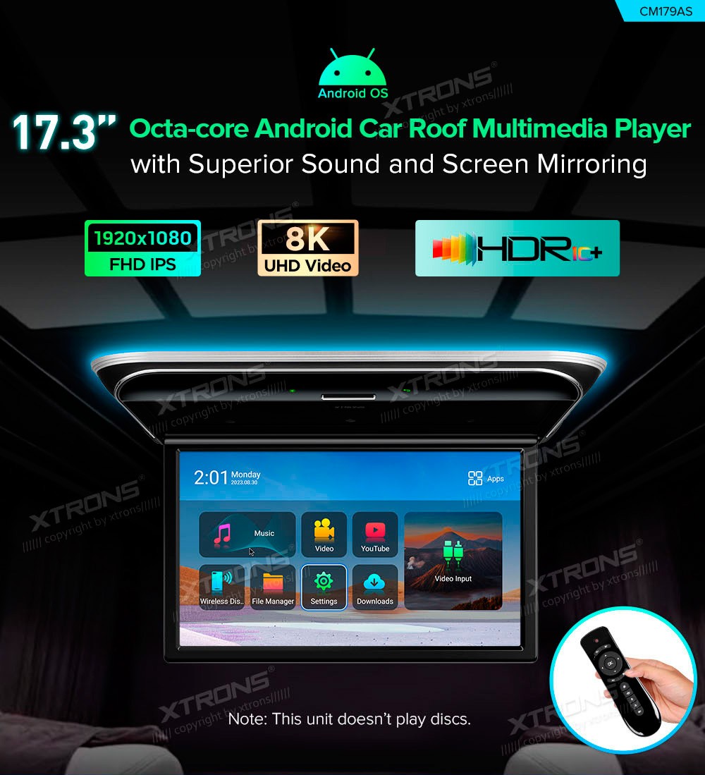 XTRONS CM179AS 17.3" Laemonitor Android WIFIEkraan 17.3" HD ( 1920*1080px ), 16:9 / 4:3, IPSToetatud signaalid: PAL/NTSC/AUTOTarkvara: AndroidProtsessor Octa-Core Cortex-A55 @2.0GHzMuutmälu DDR4 2GB, 32GB sisemäluWIFI & 4G (4G jaoks vajalik XTRONS 4GDONG001)Bluetooth 5.0 (Tänu sisseehitatud Blue ...