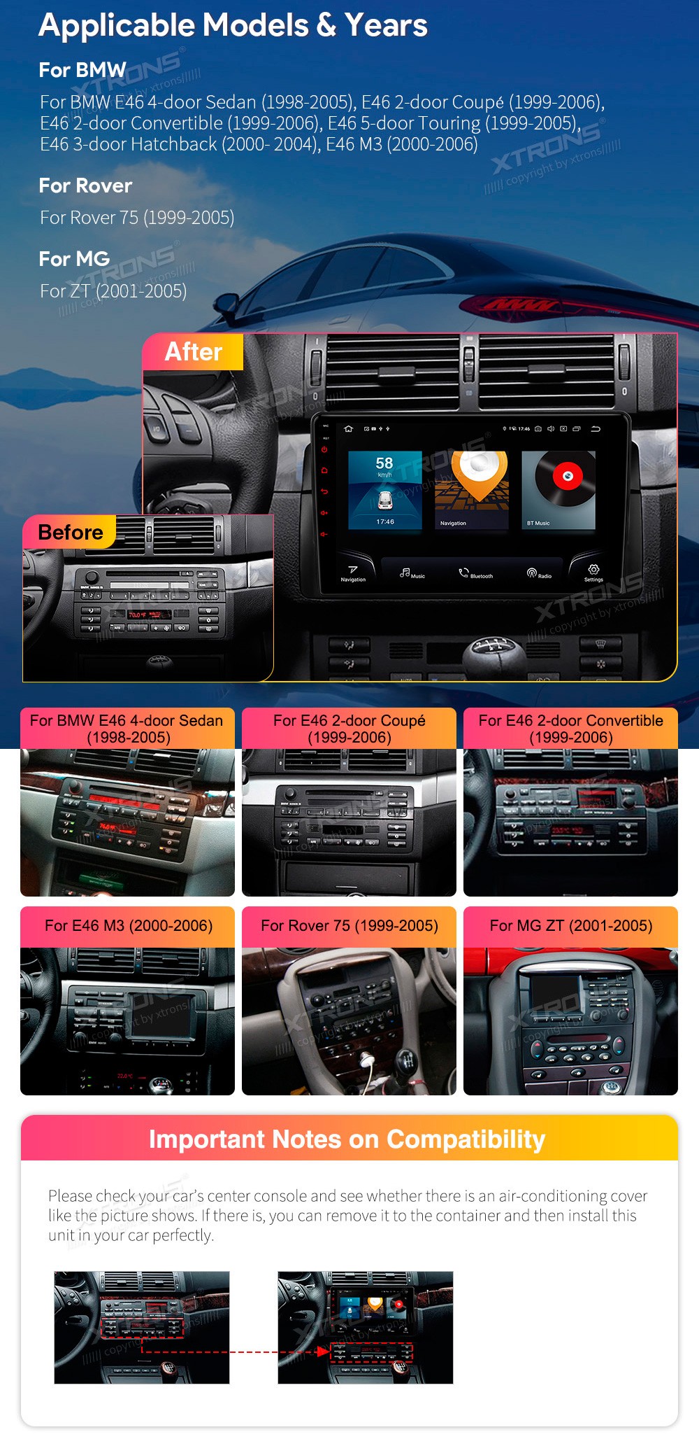 XTRONS IQP9246BP 9.0" BMW, Rover, MG Multimeedia Android 12.0 Octa Core BMW E46 4-door Sedan (1998-2005), E46 2-door Coupe; (1999-2006), E46 2-door Convertible (1999-2006), E46 5-door Touring (1999-2005), E46 3-door Hatchback (2000- 2004), E46 M3 (2000-2006)Rover 75 (1999-2005)MG ZT (2001-2 ...