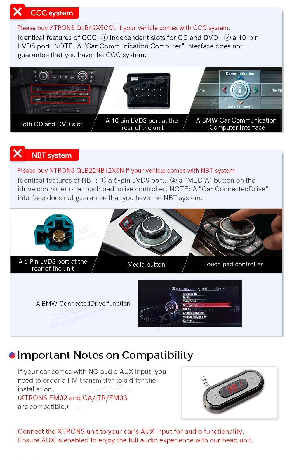 XTRONS QLB42X5CIL 14.9" BMW X5 E70, X6 E71, CIC Multimeedia Android 13.0 Octa-Core 4G BMW X5 E70 (2011-2013)BMW X6 E71 (2011-2013)(Sobib, kui sõidukil on CIC süsteem.)Tarkvara: Android 13.014.9" HD puuteekraan 2560*720px, IPS HDProtsessor Octa-Core 2xCortex-A75 2.0GHz + 6xCortex-A55 1.7GHz 64bi ...