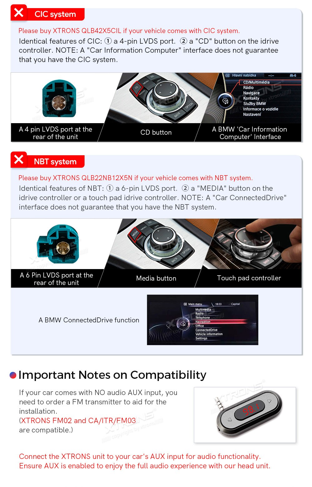 XTRONS QLB42X5CCL 14.9" BMW X5 E70, X6 E71, CCC Multimeedia Android 13.0 Octa-Core 4G BMW X5 E70 (2007-2010)BMW X6 E71 (2007-2010)(Sobib, kui sõidukil on CCC süsteem.)Tarkvara: Android 13.014.9" HD puuteekraan 2560*720px, IPS HDProtsessor Octa-Core 2xCortex-A75 2.0GHz + 6xCortex-A55 1.7GHz 64bi ...