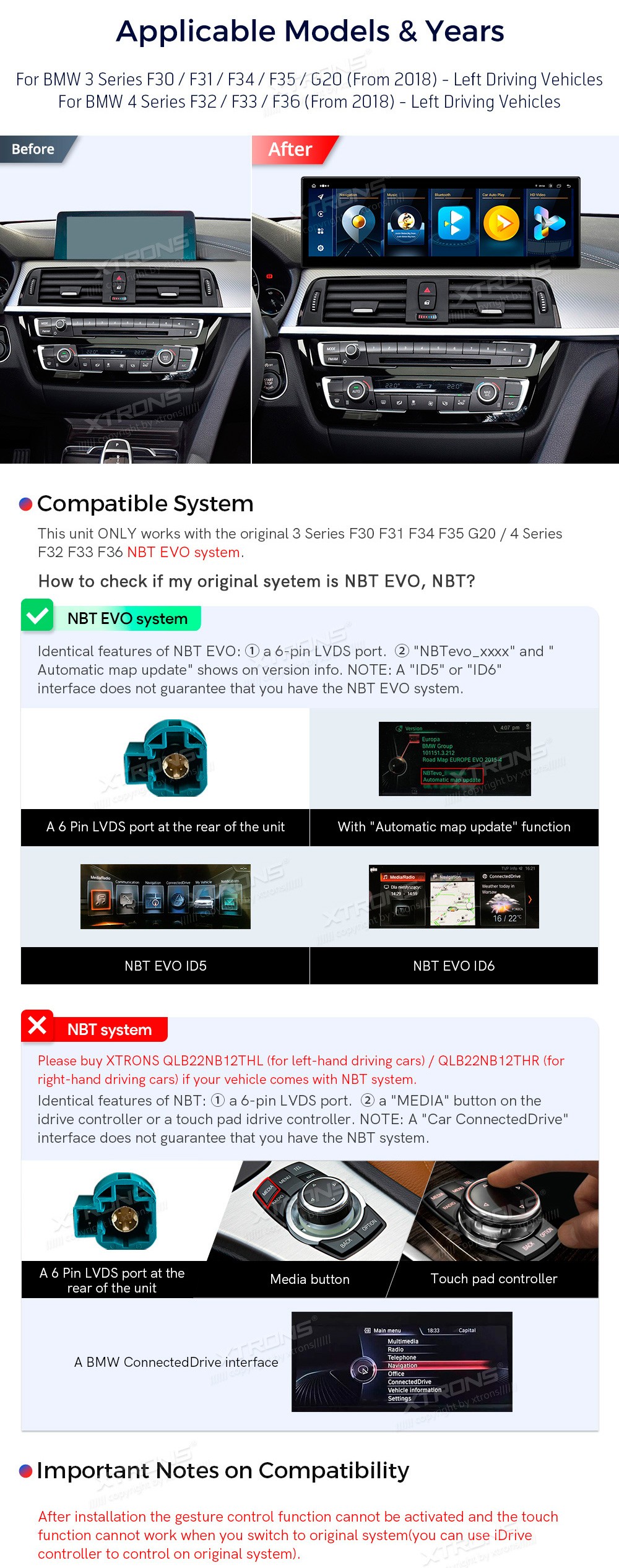 XTRONS QLB42THEVL 14.9" BMW 3, 4 Seeria NBT EVO Multimeedia Android 13.0 Octa-Core 4G BMW 3 Seeria F30, F31, F34, F35, G20 (2018-)BMW 4 Seeria F32, F33, F36 (2018-)(Sobib, kui sõidukil on NBT EVO süsteem.)Tarkvara: Android 13.014.9" HD puuteekraan 2560*720px, IPS HDProtsessor Octa-Core 2xCortex-A75 ...