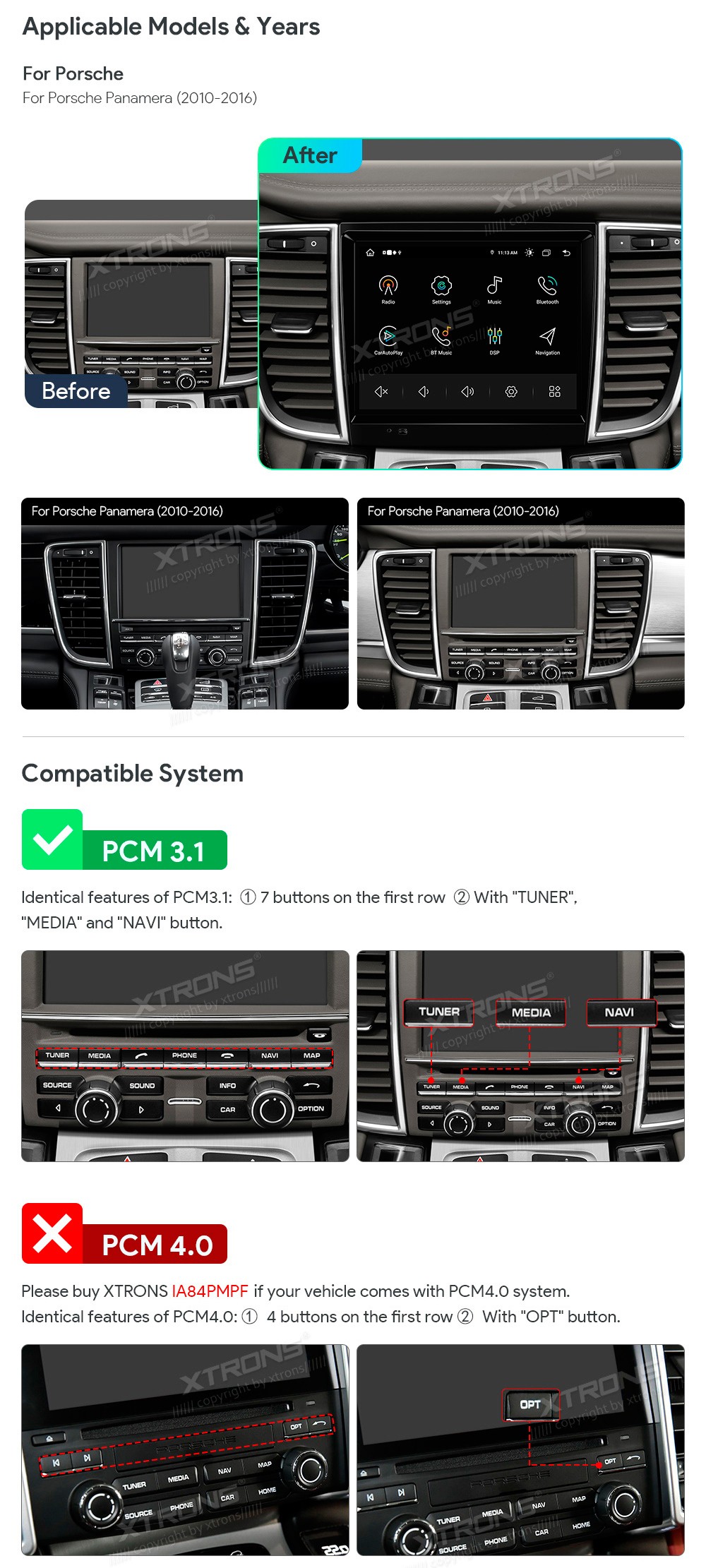 XTRONS IA84PMPT 8.4" Porsche Panamera Multimeedia Android 14.0 Octa-Core 4G Porsche Panamera (2010-2016)  PCM 3.1 süsteemiga.Tarkvara: Android 14.08.4" HD puuteekraan 1024*768px, IPSProtsessor MediaTek Cortex-A73(2.0GHz)x2 + Cortex-A53(1.7GHz)x6 Octa-Core 64bitMuutmälu 4GB DDR4, 64GB SSD sisemä ...