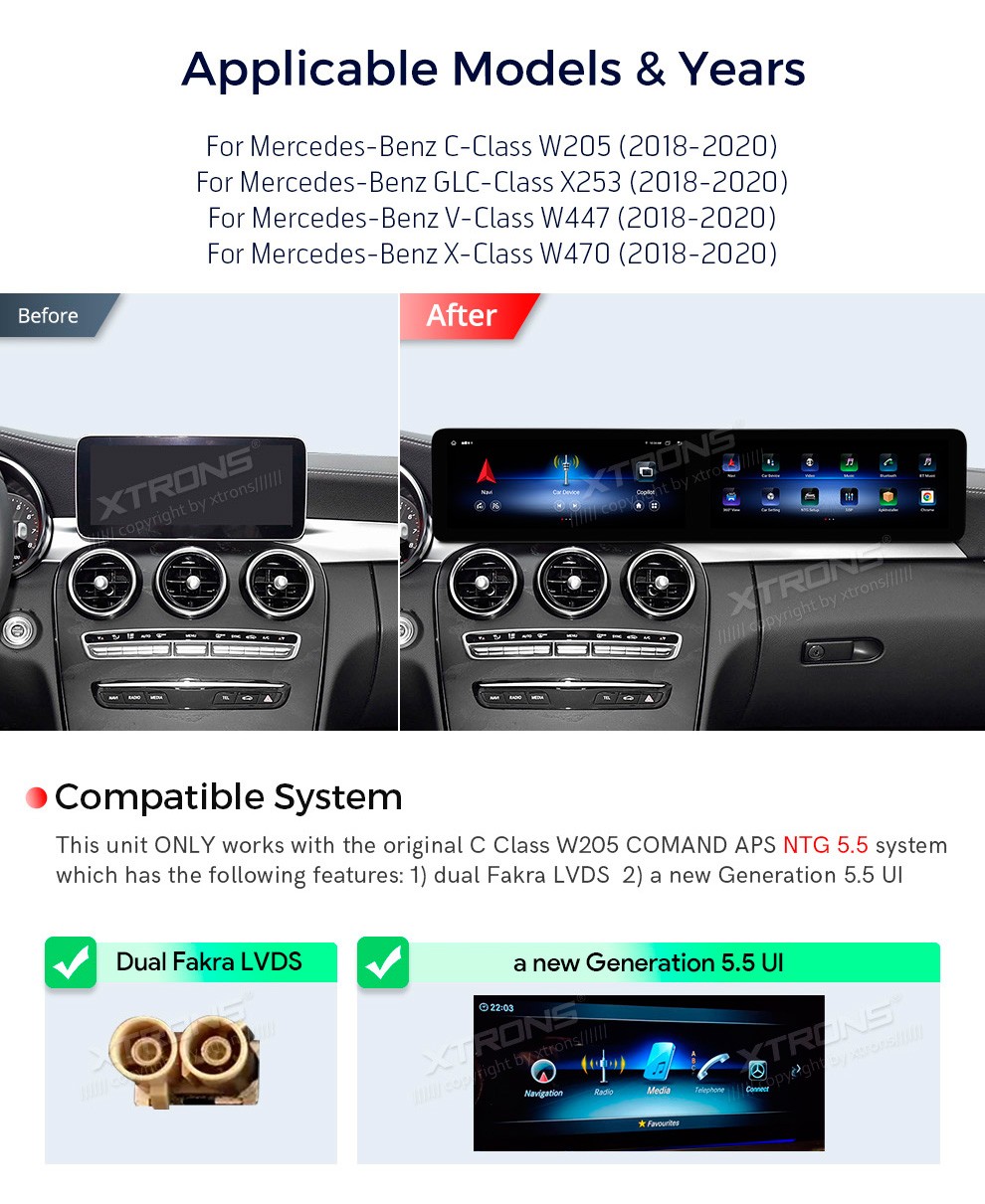 XTRONS QLM1455CT 24.6" Mercedes-Benz W205, X253, W447, W470 NTG 5.5 Multimeedia Android 13.0 Octa-Core 4G Mercedes-BenzC-Class W205 (2018-2020) NTG 5.5GLC-Class X253 (2018-2020) NTG 5.5V-Class W447 (2018-2020) NTG 5.5X-Class W470 (2018-2020) NTG 5.5Tarkvara: Android 13.024.6" HD puuteekraan 1920*720 ...