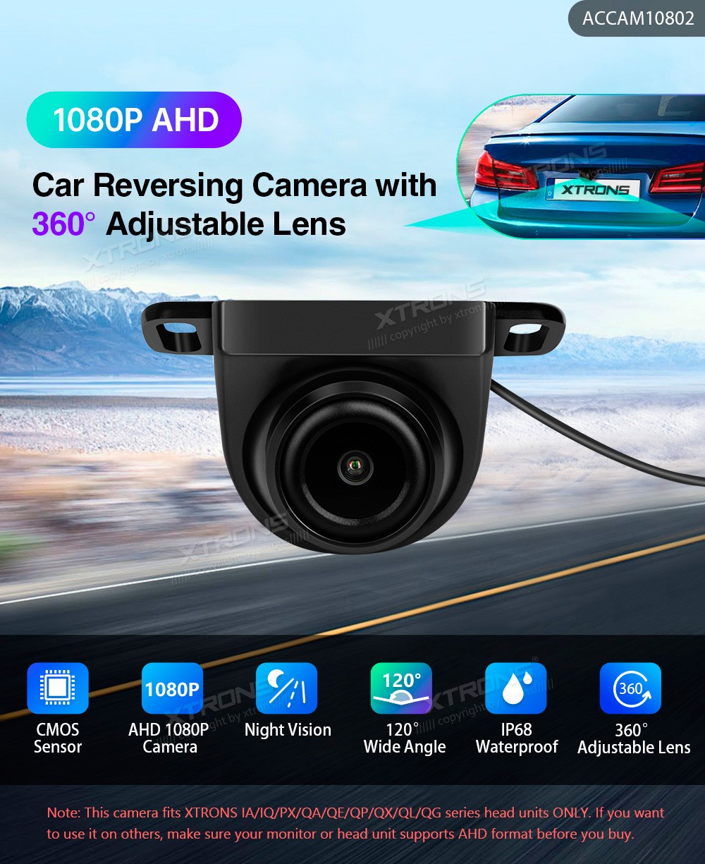XTRONS ACCAM10802 1080P AHD auto tagurduskaamera 360° reguleeritava objektiiviga Korpus kaitseklassiga IP68Video: AHDVaatenurk: 120°Resolutsioon: 1920 x 1080 pxToide: DC12VVõimsustarve: ...