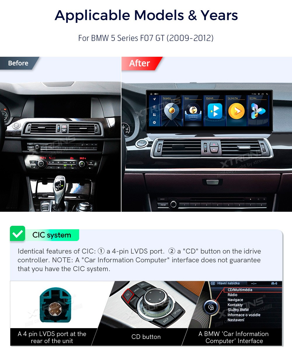 XTRONS QLBH44FVCIGT3 14.9" BMW 5 Seeria F07 CIC Multimeedia Android 14.0 Octa-Core 4G BMW 5 Seeria F07 GT (2009-2012) (Sobib, kui sõidukil on CIC süsteem.)Tarkvara: Android 14.014.9" 2560*720px, IPS G+G HD puuteekraanProtsessor Octa-Core 2x Cortex-A75 + 6x Cortex-A55 64bitMuutmälu LPDDR4 8GB, eMMC 1 ...