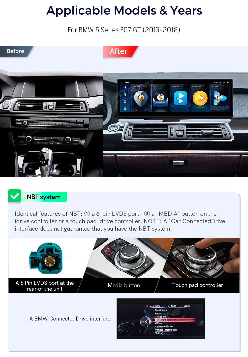 XTRONS QLBH44FVNBGT3 14.9" BMW 5 Seeria F07 NBT Multimeedia Android 14.0 Octa-Core 4G BMW 5 Seeria F07 GT (2013-2018) (Sobib, kui sõidukil on NBT süsteem.)Tarkvara: Android 14.014.9" 2560*720px, IPS G+G HD puuteekraanProtsessor Octa-Core 2x Cortex-A75 + 6x Cortex-A55 64bitMuutmälu LPDDR4 8GB, eMMC 1 ...