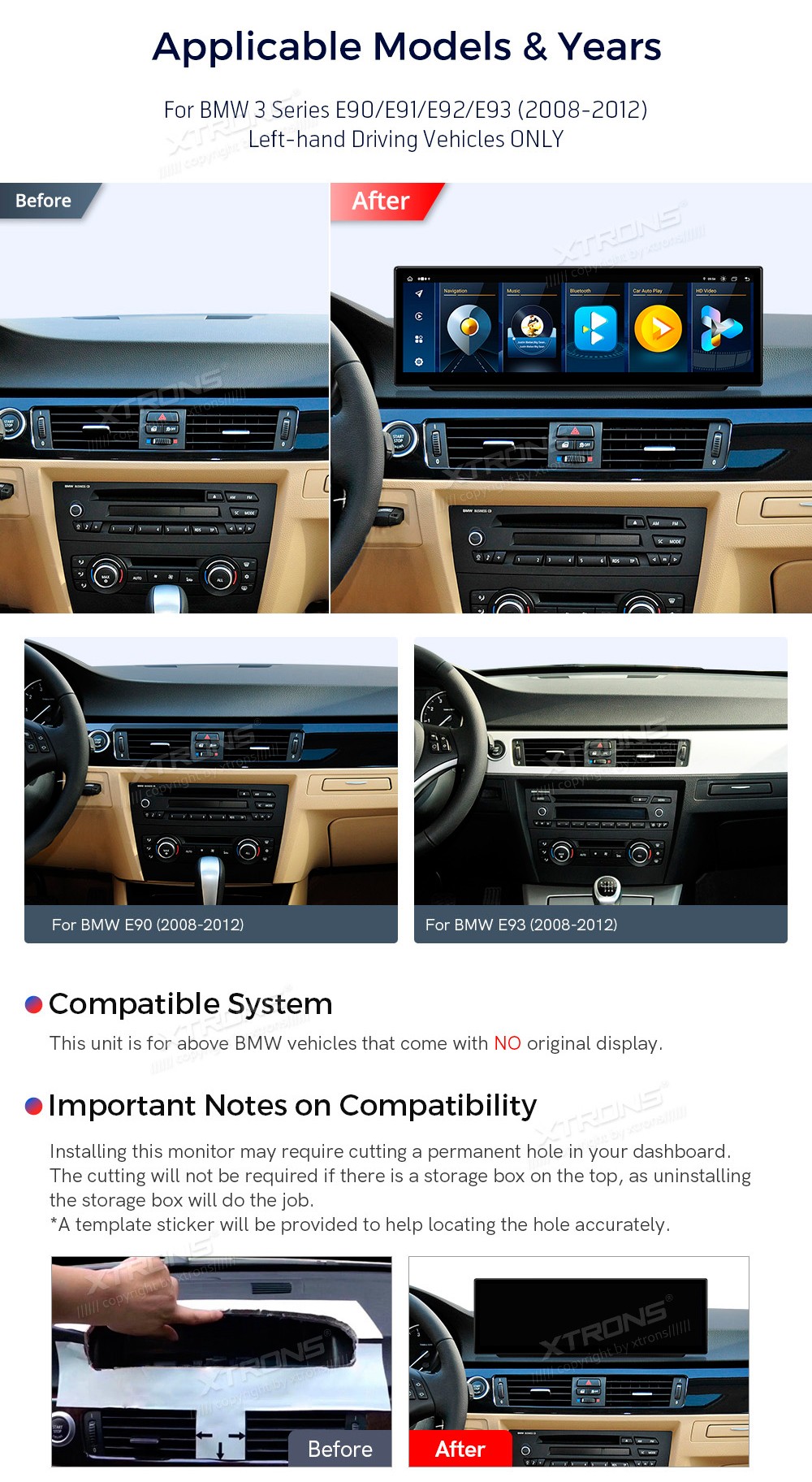 XTRONS QLBH4490UNL 14.9" BMW 3 Seeria E90, E91, E92, E93 Multimeedia Android 14.0 Octa-Core 4G BMW 3 Seeria E90, E91, E92, E93 (2008-2012)  (Kui autol puudub originaalne ekraan.)Tarkvara: Android 14.014.9" 2560*720px, IPS G+G HD puuteekraanProtsessor Octa-Core 2x Cortex-A75 + 6x Cortex-A55 64bi ...