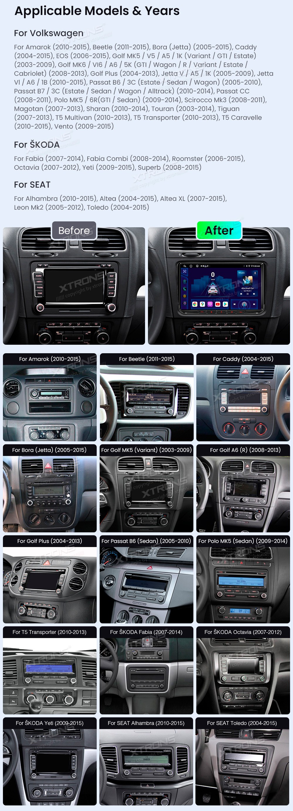 XTRONS ID90MTVL 9.0" VOLKSWAGEN, SEAT, SKODA Multimeedia Android Octa-Core 4G VolkswagenAmarok (2010-2015), Beetle (2011-2015), Bora (Jetta)(2005-2015), Caddy (2004-2015), EOS (2006-2015), Golf MK5/V5/A5/1K(Variant/GTI/Estate)(2003-2009), Golf MK6/VI6/A6/5K(GTI/Wagon/R/Variant/Estate/Cabriolet ...