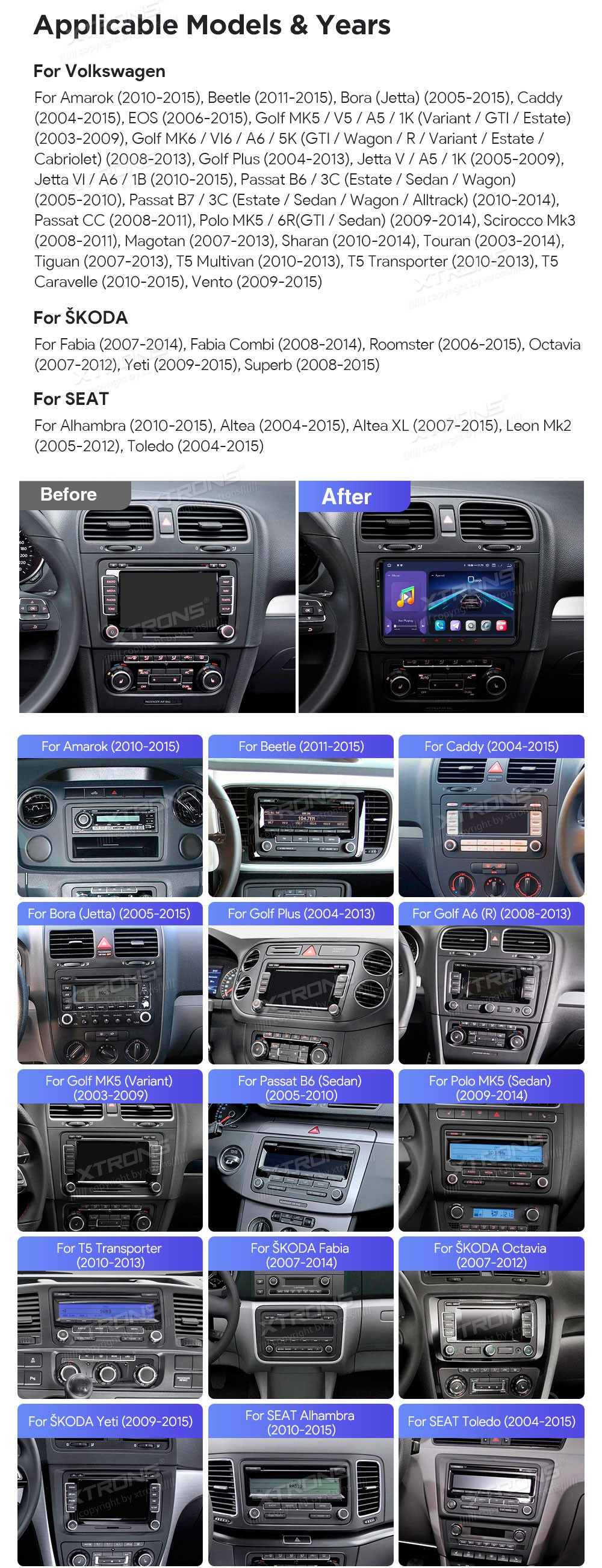 XTRONS IQ94MTVP 9.0" VW, Skoda, Seat Multimeedia Android 14.0 Octa Core 4G HDMI VolkswagenAmarok (2010-2015), Beetle (2011-2015), Bora (Jetta)(2005-2015), Caddy (2004-2015), EOS (2006-2015), Golf MK5/V5/A5/1K(Variant/GTI/Estate)(2003-2009), Golf MK6/VI6/A6/5K(GTI/Wagon/R/Variant/Estate/Cabriol ...