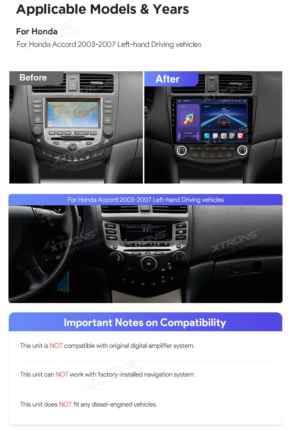 XTRONS IQP14ACHLP 10.1" HONDA Accord Multimeedia Android 14.0 Octa Core 4G HDMI Honda Accord (2003-2007)Tarkvara: Android 14.010.1" HD puuteekraan 1280*800px, QLED HD IPS G+GProtsessor Qualcomm Snapdragon 665 4xCortex-A73 + 4xCortex-A53 Octa-Core 64bit Muutmälu DDR4 8GB, 256GB sisemäluAdreno 610 GPU ...