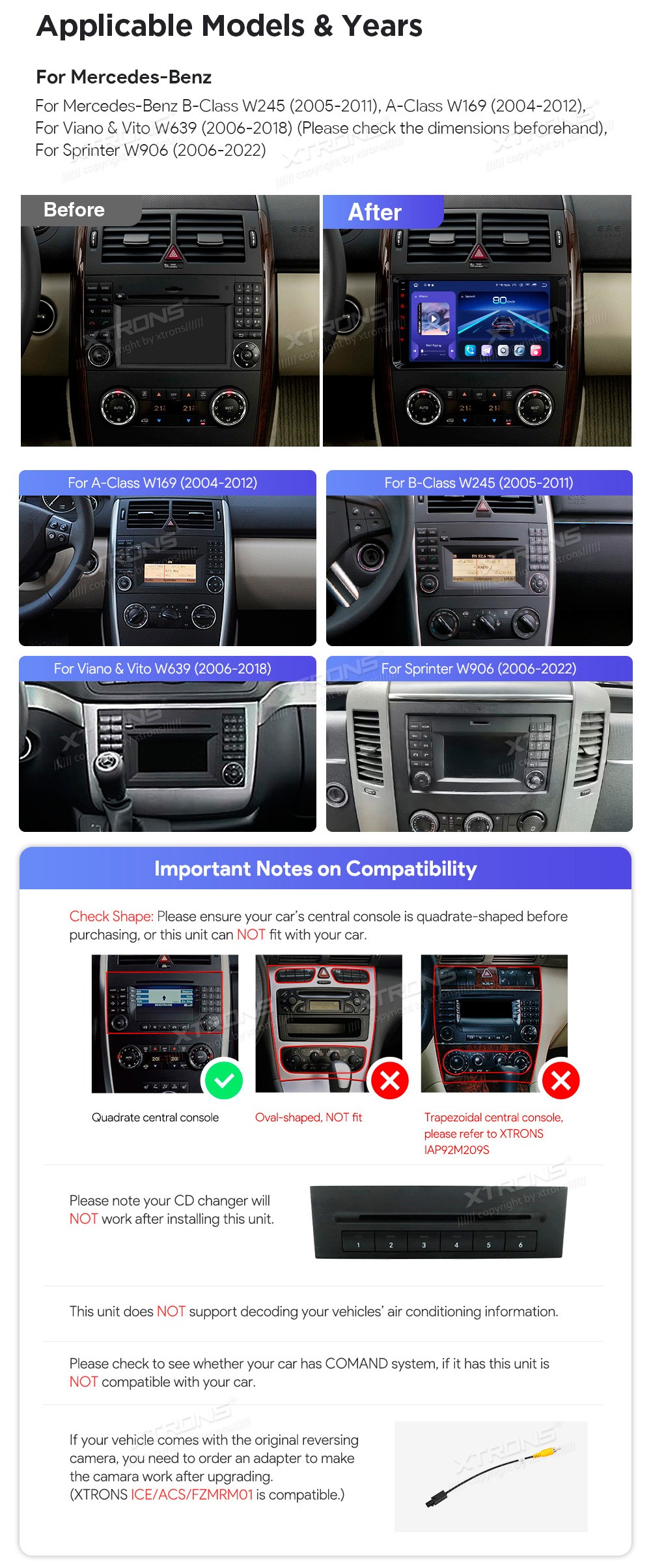 XTRONS IQP94M245P 9.0" Mercedes Benz Vito, Viano, Sprinter Multimeedia Android 12.0 Octa Core 4G HDMI Mercedes-Benz B-Class W245 (2005-2011)A-Class W169 (2004-2012)Viano & Vito W639 (2006-2018) (Please check the dimensions beforehand)Sprinter W906 (2006-2022)Tarkvara: Android 14.09.0" HD puuteek ...
