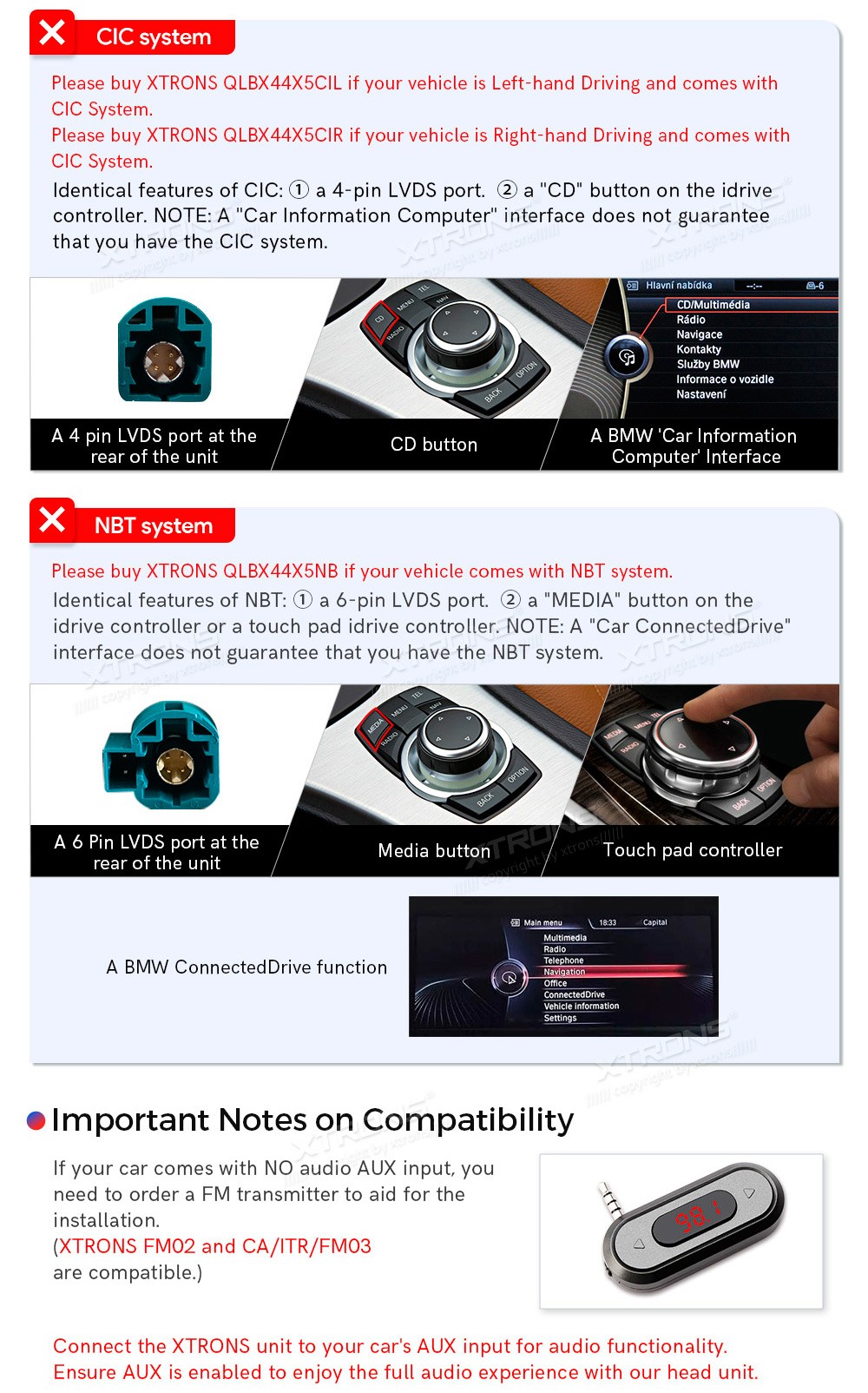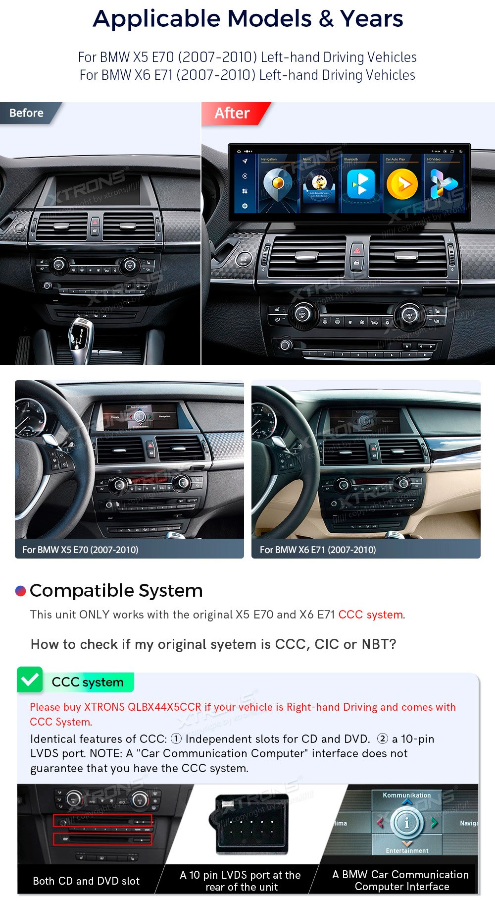 XTRONS QLBX44X5CCL 14.9" BMW X5 E70, X6 E71 CCC Multimeedia Android 14.0 Octa-Core 4G BMW X5 E70 (2007-2010)BMW X6 E71 (2007-2010)(Sobib, kui sõidukil on CCC süsteem.)Tarkvara: Android 14.014.9" 1920*1080px, IPS G+G HD puuteekraanProtsessor Octa-Core 2x Cortex-A75 + 6x Cortex-A55 64bitMuutmälu LPDDR ...