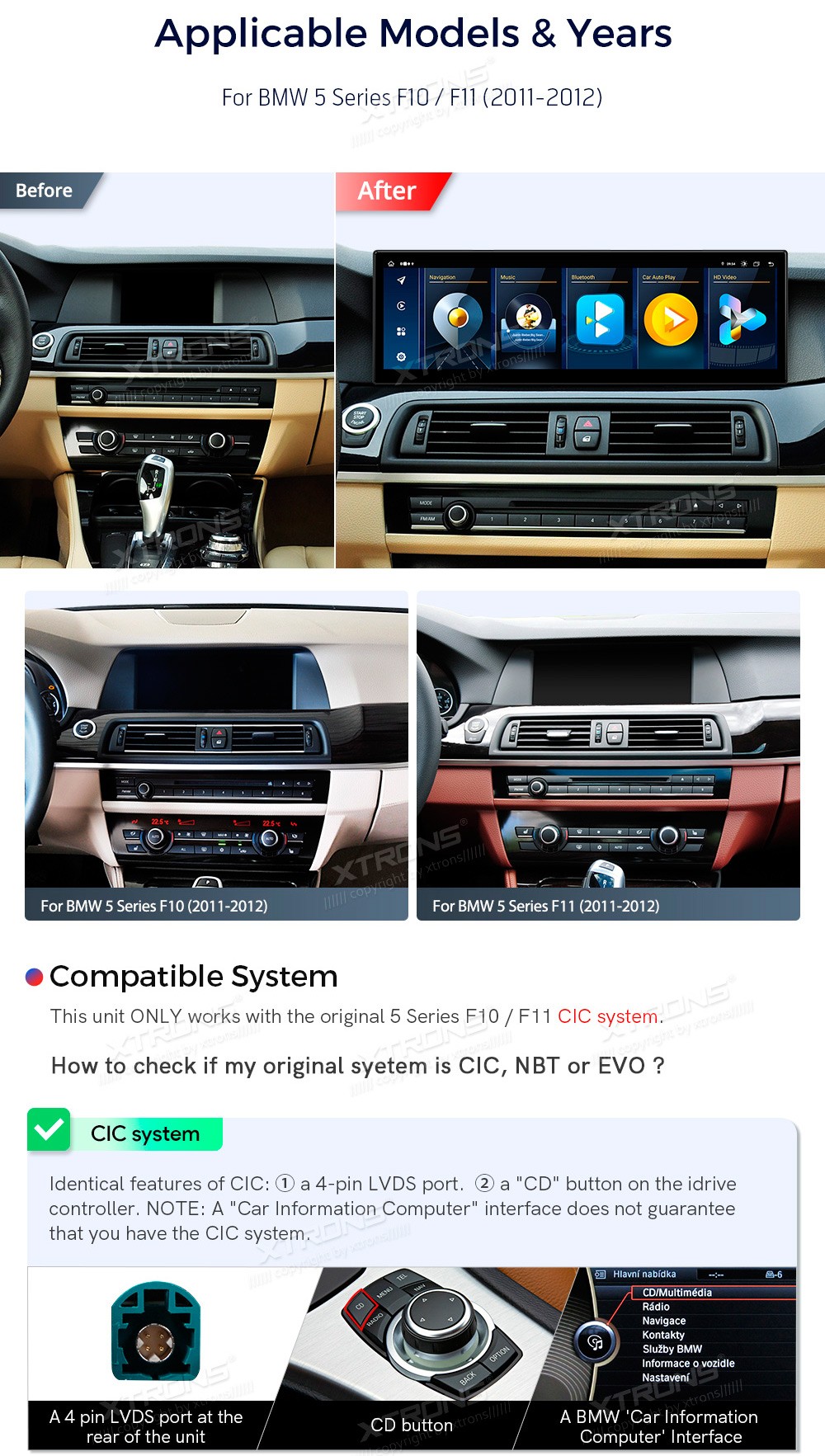 XTRONS QLBX44FVCI 14.9" BMW 5 Seeria F10, F11 CIC Multimeedia Android 14.0 Octa-Core 4G BMW 5 Seeria F10/F11 (2011-2012) (Sobib, kui sõidukil on CIC süsteem.)Tarkvara: Android 14.014.9" 1920*1080px, IPS G+G HD puuteekraanProtsessor Octa-Core 2x Cortex-A75 + 6x Cortex-A55 64bitMuutmälu LPDDR4 8GB, eM ...