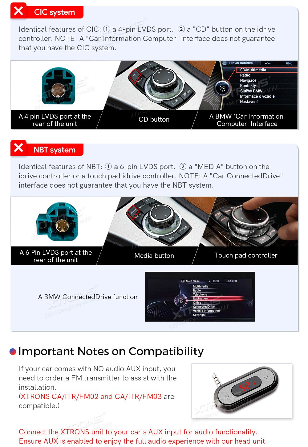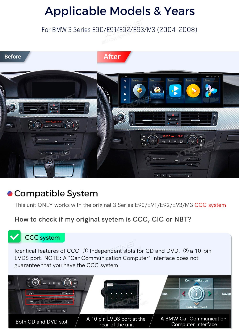 XTRONS QLBX4492CC3 14.9" BMW 3 Seeria E90, E91, E92, E93, M3 CCC Multimeedia Android 14.0 Octa-Core 4G BMW 3 Seeria E90, E91, E92, E93, M3 (2004-2008) (Sobib, kui sõidukil on CCC süsteem.)Tarkvara: Android 14.014.9" 1920*1080px, IPS G+G HD puuteekraanProtsessor Octa-Core 2x Cortex-A75 + 6x Cortex-A5 ...