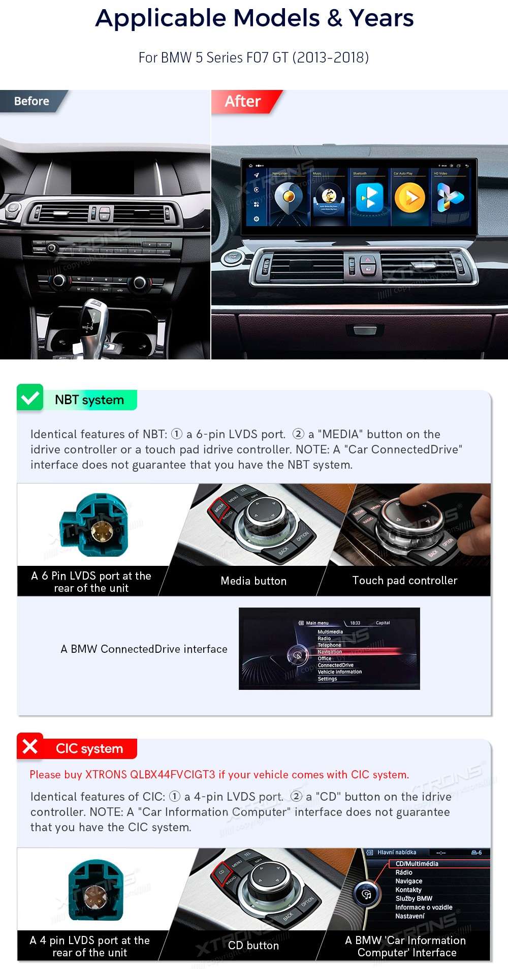 XTRONS QLBX44FVNBGT3 14.9" BMW 5 Seeria F07 GT, NBT Multimeedia Android 14.0 Octa-Core 4G BMW 5 Seeria F07 GT (2013-2018) (Sobib, kui sõidukil on NBT süsteem.)Tarkvara: Android 14.014.9" 1920*1080px, IPS G+G HD puuteekraanProtsessor Octa-Core 2x Cortex-A75 + 6x Cortex-A55 64bitMuutmälu LPDDR4 8GB, e ...