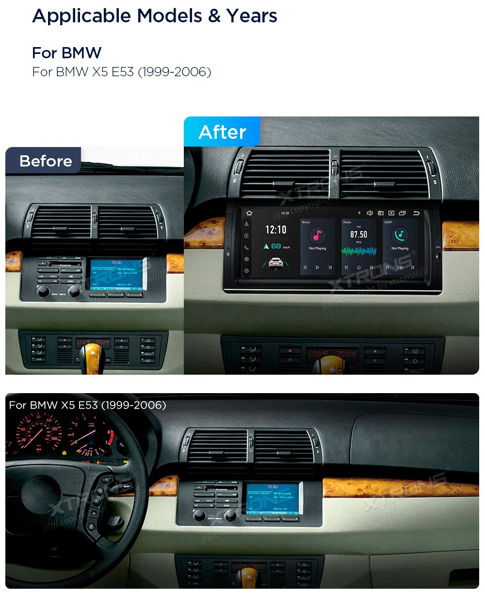 XTRONS PX1453BLHGS 10.25" BMW X5 E53 Multimeedia Android 14.0 Octa-Core 4G BMW X5 E53 (1999-2006)Tarkvara: Android 14.010.25" HD puuteekraan 1280*480px, IPSProtsessor  Octa-Core 64bit 2.0GHzMuutmälu 4GB DDR4, 64GB EMMC 5.1 sisemäluGüroskoobi andurGPS NavigatsioonCAR AutoPlay (Bluetooth) Android ...