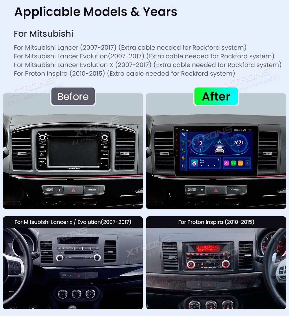 XTRONS IDP10LSMA 10.1" Mitsubishi Lancer, Proton Multimeedia Android Octa-Core 4G Mitsubishi Lancer (2007-2017) (Rockfordi süsteemi jaoks on vaja lisakaablit)Mitsubishi Lancer Evolution(2007-2017) (Rockfordi süsteemi jaoks on vaja lisakaablit)Mitsubishi Lancer Evolution Evolution X(2007-2017) (Rockf ...