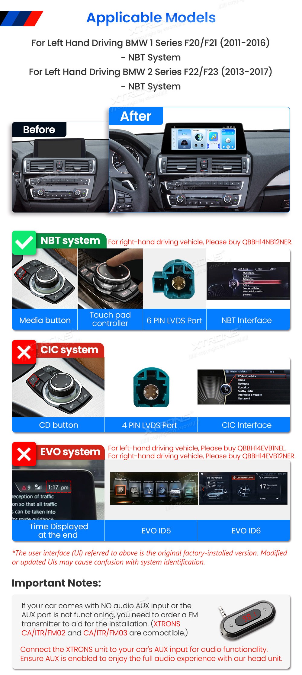 XTRONS QBBH14NB1NEL 10.25" BMW 1, 2 Seeria F20, F21, F22, F23 NBT Multimeedia Android Octa-Core 4G BMW 1 Seeria F20, F21 (2011-2016)BMW 2 Seeria F22, F23 (2013-2017)(Sobib, kui sõidukil on NBT süsteem.)Tarkvara: Android10.25" HD puuteekraan 1920*720px, IPS HD G+GProtsessor Qualcomm Octa-Co ...