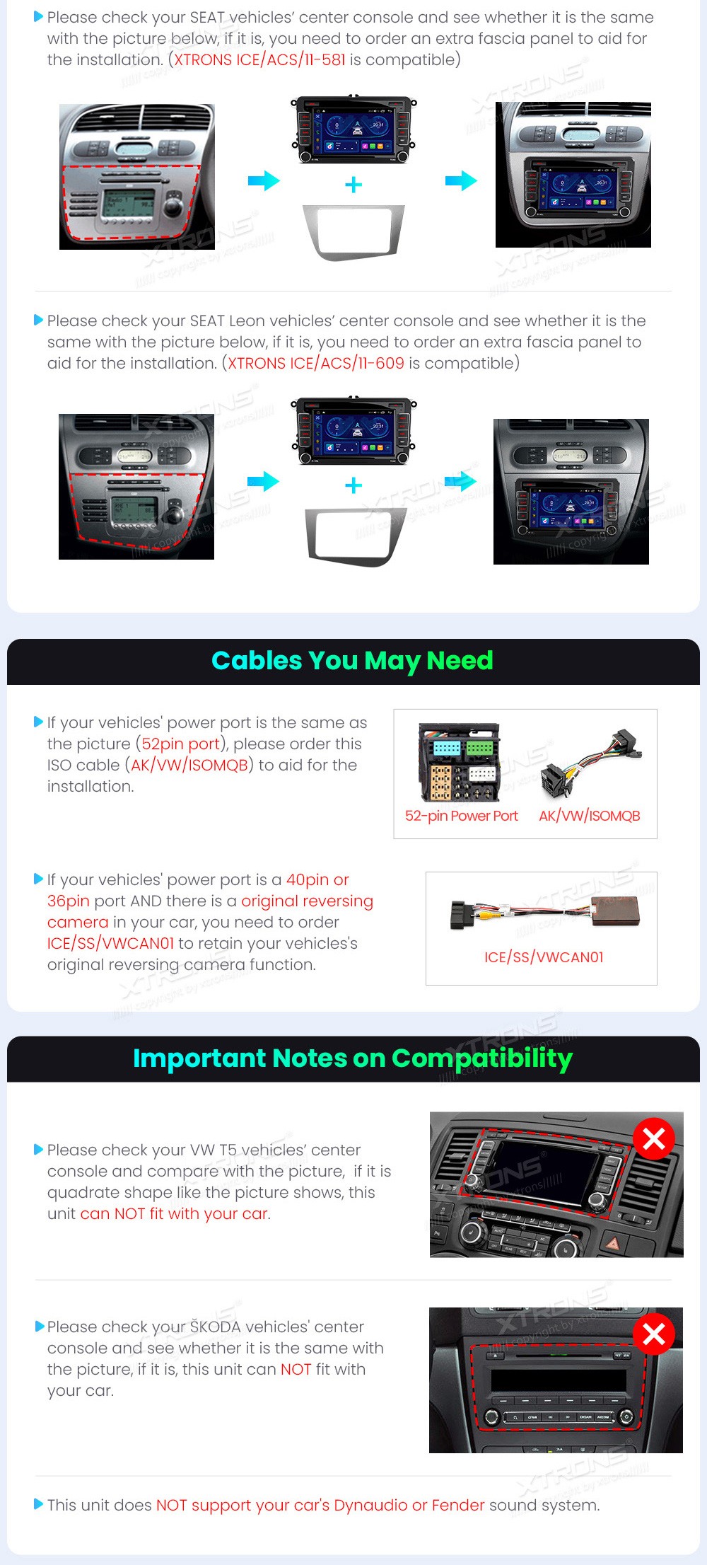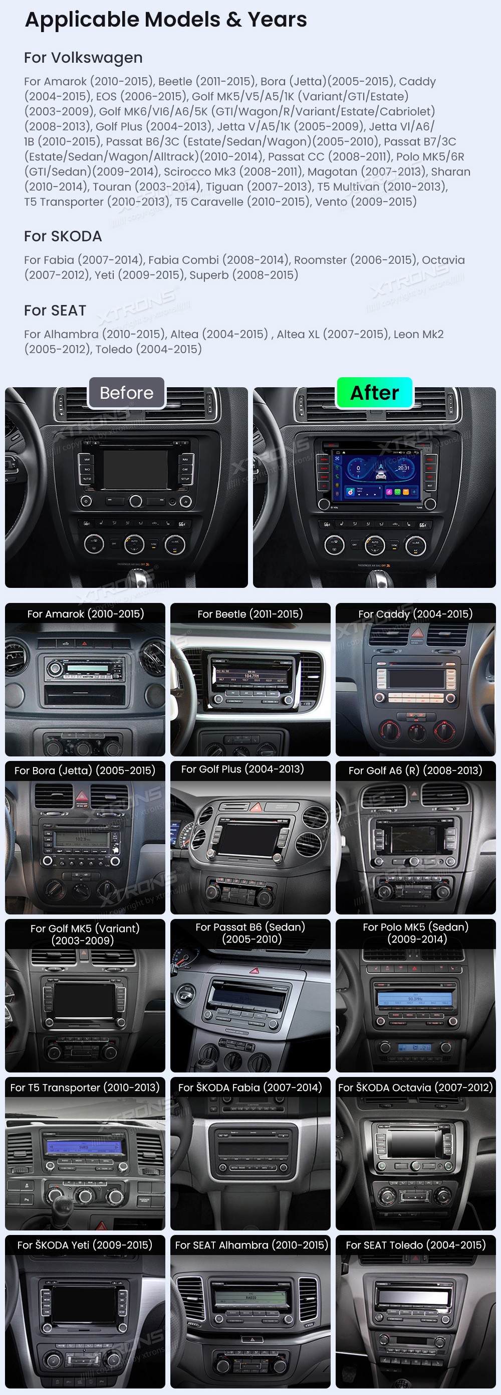 XTRONS ID70MTVL 7.0" Volkswagen, Skoda, Seat Multimeedia Android 14 Octa-Core 4G VolkswagenAmarok (2010-2015), Beetle (2011-2015), Bora (Jetta)(2005-2015), Caddy (2004-2015), EOS (2006-2015), Golf MK5/V5/A5/1K(Variant/GTI/Estate)(2003-2009), Golf MK6/VI6/A6/5K(GTI/Wagon/R/Variant/Estate/Cabrio ...
