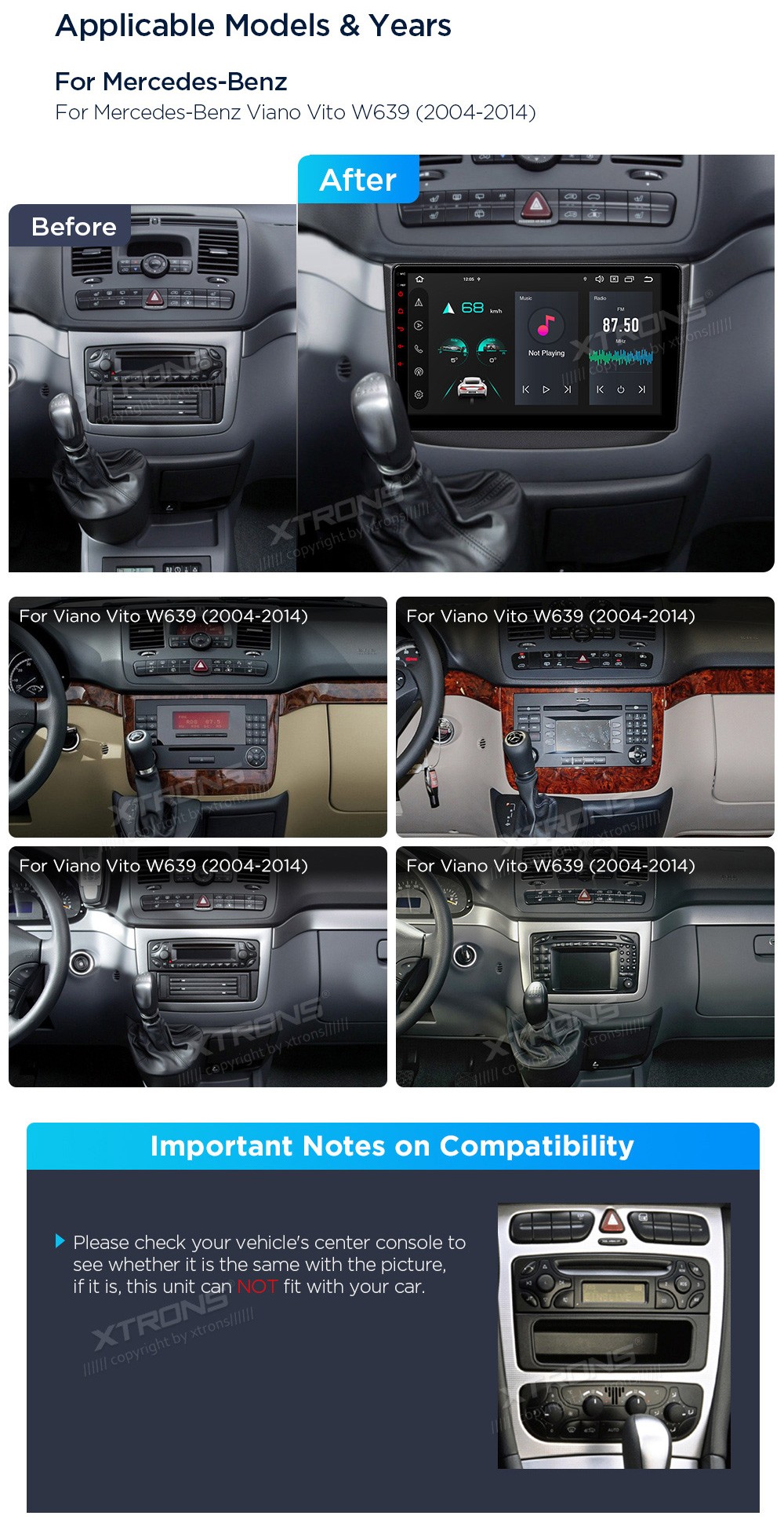 XTRONS PXP14M639GDAB 10.1" Mercedes-Benz Viano Vito W639 Multimeedia Android 14.0 Octa-Core 4G Mercedes-Benz Viano Vito W639 (2004-2014)Tarkvara: Android 14.010.1" HD puuteekraan 1280*720px, G+GProtsessor Octa-Core 2.2GHz 64bitMuutmälu DDR4 4GB, eMMC 5.1 64GB sisemäluGPS NavigatsioonCAR AutoPla ...