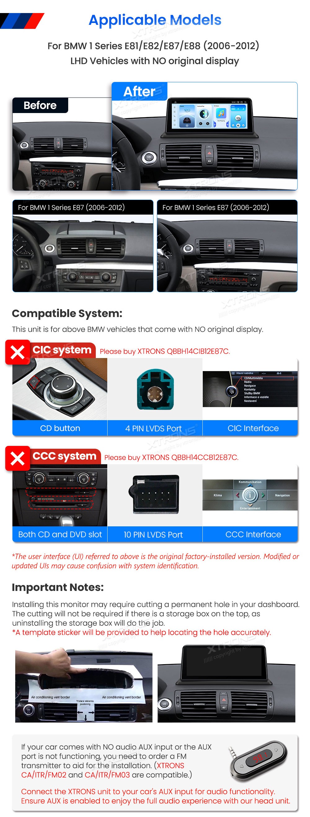 XTRONS QBBH1487UNL 10.25" BMW 1 Seeria E81, E82, E87, E88 Multimeedia Android Octa-Core 4G BMW 1 Seeria E81, E82, E87, E88 (2006-2012) (Kui autol puudub originaalne ekraan.)Tarkvara: Android10.25" HD puuteekraan 1920*720px, IPS HD G+GProtsessor Qualcomm Octa-Core 64bit 2.0GHzMuutmälu DDR4 8GB, ...