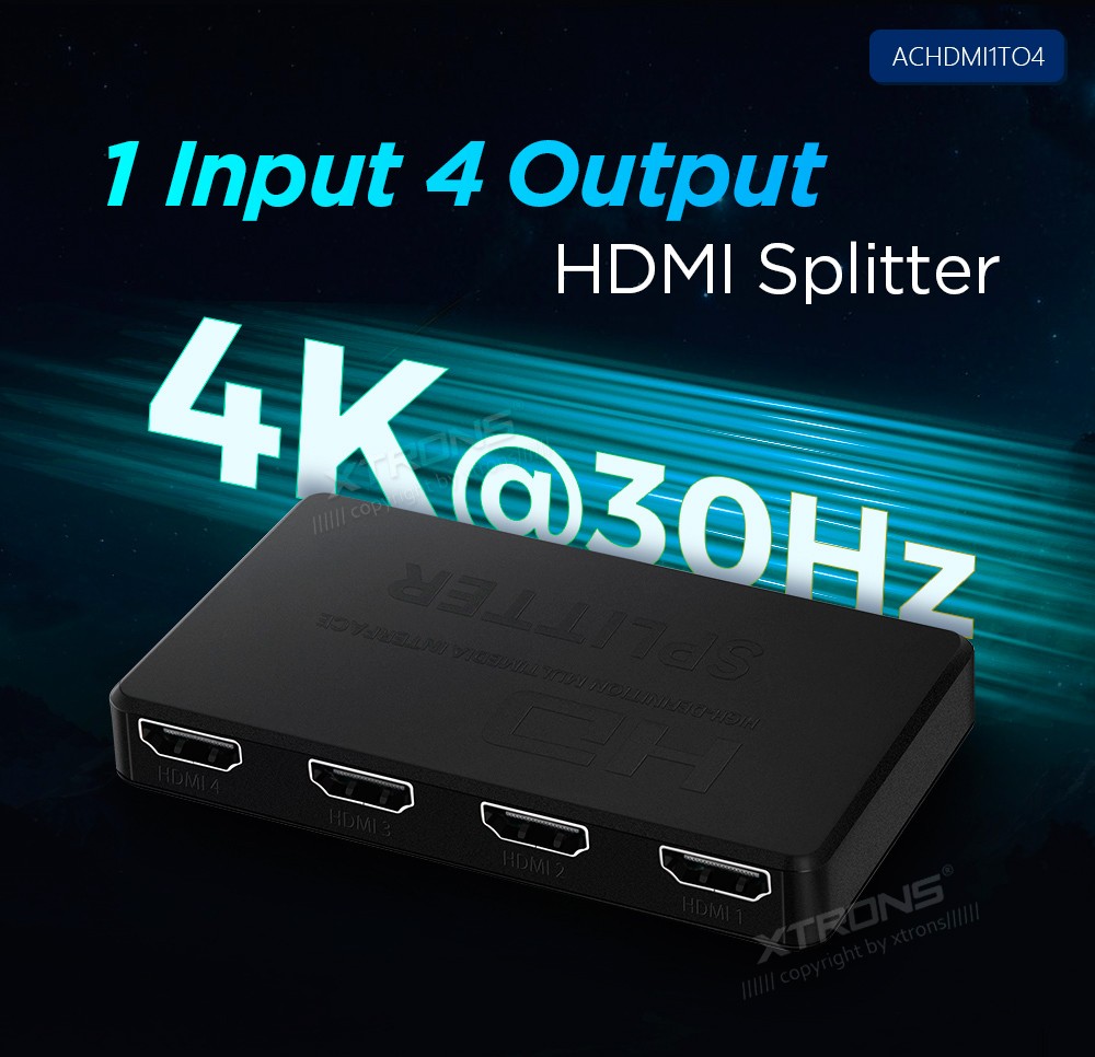 XTRONS ACHDMI1TO4 HDMI Jagaja x 41 Input 4 Output HDMI Splitter 4K 30HzSpecial Features*4K Ultra HD Resoiution*Support Full 3D/Dolby Audio/12-bit Color*Superior Signal Stability for Extended Ranges*High Quality ABS, more Durable ...