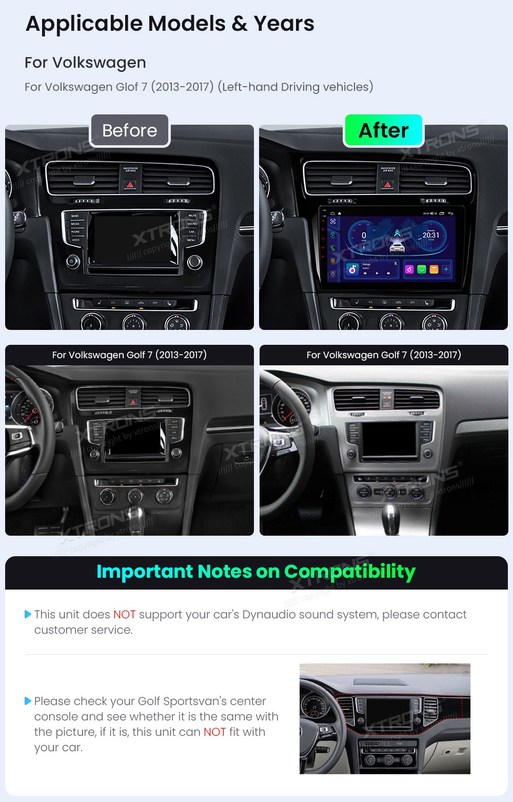 XTRONS IDSP10GFVL 10.1" Volkswagen Golf 7 Multimeedia Android Octa-Core Volkswagen Golf 7 (2013-2017)Tarkvara: Android10.1" HD puuteekraan 1280*720px, IPSProtsessor 8xCortex-A55 Octa-Core 64bitMuutmälu 2GB, 64GB sisemäluGPS NavigatsioonCAR AutoPlay (Bluetooth ja USB) AndroidAuto (Bluetooth ja U ...Lisaseadmed
