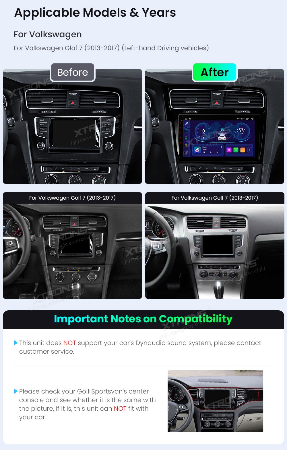 XTRONS IDSP10GFVL 10.1" Volkswagen Golf 7 Multimeedia Android Octa-Core Volkswagen Golf 7 2013-2017Tarkvara: Android9.0" HD puuteekraan 1280*720px, G+G IPSProtsessor 8xCortex-A55 Octa-Core 64bitMuutmälu 2GB, 64GB sisemäluGPS NavigatsioonCAR AutoPlay (Bluetooth ja USB) AndroidAuto (Bluetoo ...Lisaseadmed