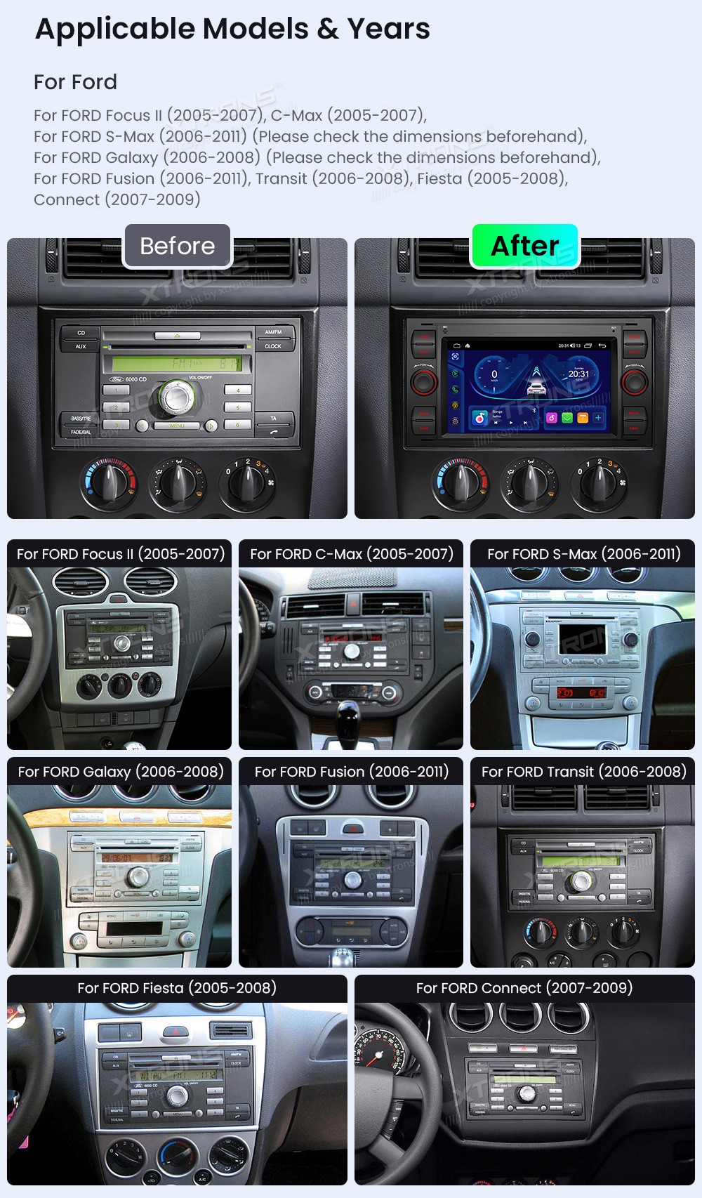 XTRONS IDS70QSFBL 7.0" FORD Multimeedia Android Octa-Core FORD Focus II (2005-2007), C-Max (2005-2007), S-Max (2006-2011) (Please check the dimensions beforehand), Galaxy(2006-2008)(Please check the dimensions beforehand), Fusion (2006-2011), Transit (2006-2008), Fiesta (2005-2008), ...
