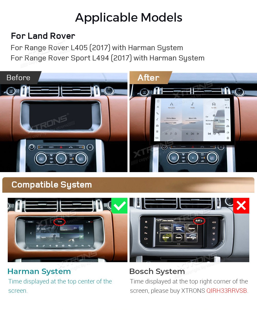 XTRONS QIRH33RRVSH 13.3" Range Rover L405/L494 Multimeedia Android Octa-Core 4G Range Rover L405 / Sport L494 (2017) with Harman SystemTarkvara: Android 1413.3" HD puuteekraan 1920*1080px, IPS HD G+G QLEDProtsessor Qualcomm Octa-Core 4xA73+4xA53 64bit 2.8GHzMuutmälu LPDDR4 8GB, UFS2.2 128GB sisemälu ...