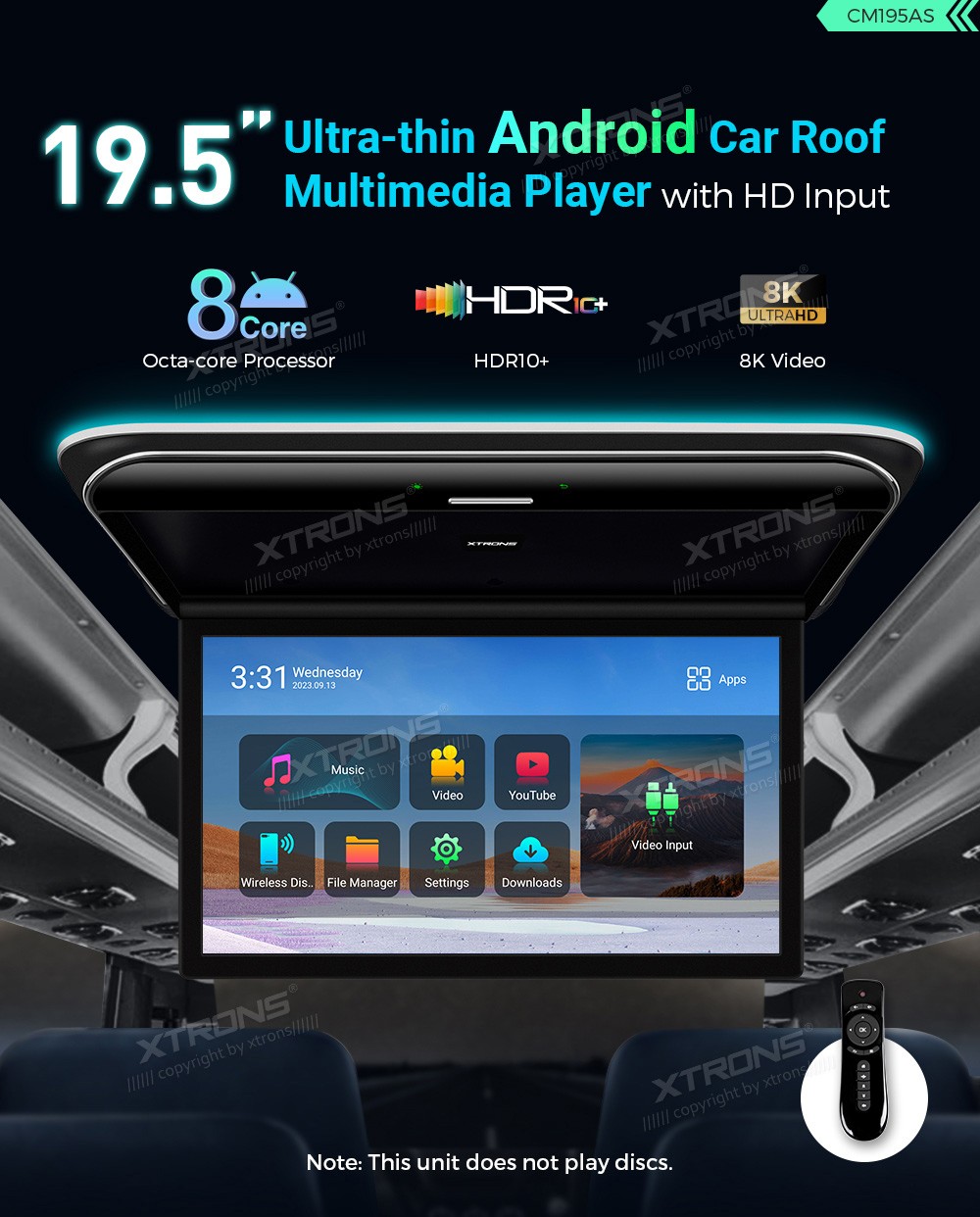 XTRONS CM195AF 19.5-tolline katusele paigaldatav monitor 19,5-tolline 2+32 GB neljatuumaline Android 12 autoteleri katusemonitor HD-sisendigaErifunktsioonid*Android 12 autoteleri*2 GB muutmälu + 32 GB ROM*19,5-tolline 1600x900 piksliga ülisuur HD IPS-ekraan*HDR10+ /2K/4K video*170° reguleeritav vaat ...