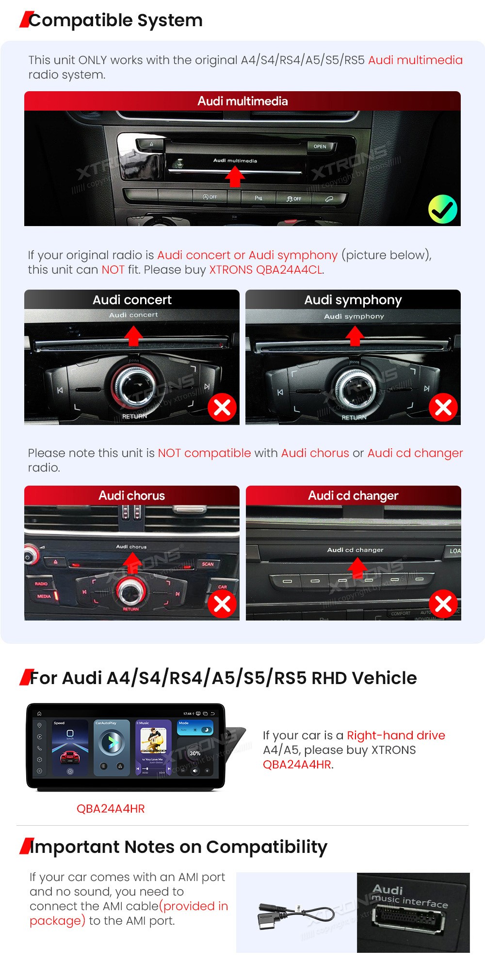 XTRONS QBA24A4HL 12.3" AUDI A4/A5 Multimeedia Android 14 Octa-Core 4G